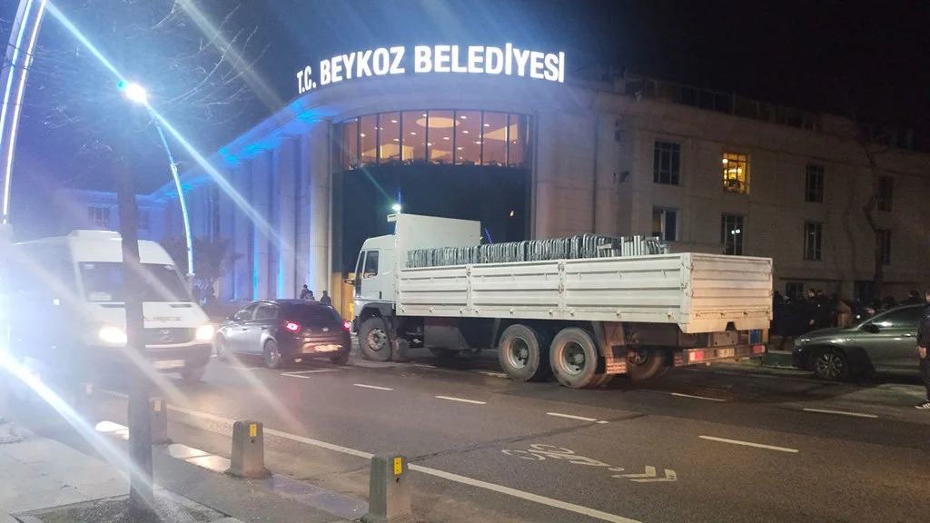 Beykoz Belediyesi binası, polis ve çevik kuvvet ekipleri tarafından bariyerlerle abluka altına alındı.