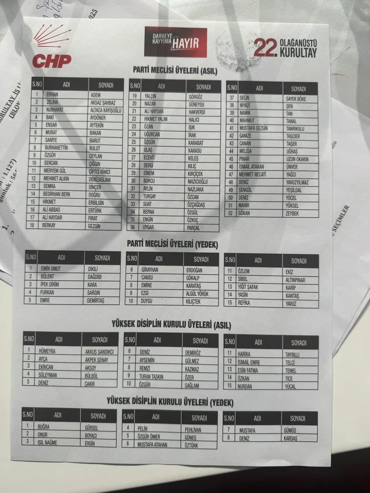 Blok listeyle yapılması kararlaştırılan seçimlerde Genel Başkan Özgür Özel, mevcut Parti Meclisi ve Yüksek Disiplin Kurulu listesini büyük oranda korudu.