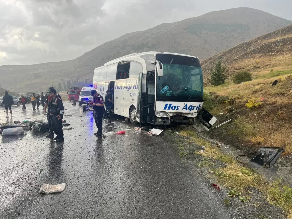 Ağrı’dan İzmir’e giden O.K. idaresindeki 34 CZH 636 plakalı Has Ağrılı Turizm’e ait yolcu otobüsü, Sivas-Erzincan kara yolunun Kuzköy mevkisinde dağın yamacına çarptı.